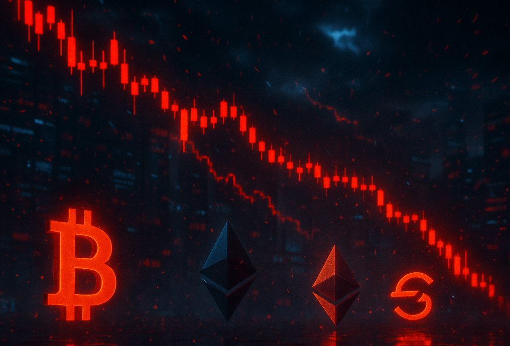 Bitcoin shed more than 5% to trade below $86,600, while Ethereum collapsed 5.5% to $2,820, the lowest level in months. Solana, XRP, BNB, and altcoins all posted losses.